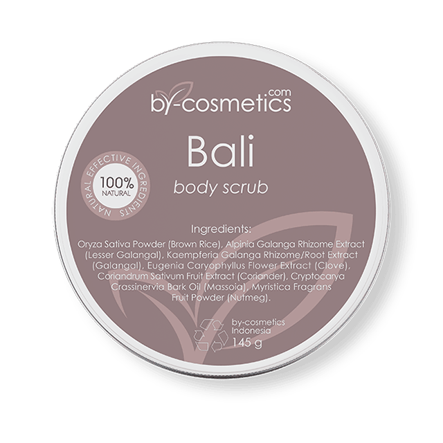 Description Application Ingredients Storage Bali body scrub has collected in itself all the variety of feelings and emotions bestowed on him by the island of the Gods. Silk, warm wind blowing from two oceans caresses the skin. Lush rice terraces amaze the imagination with their luscious bright greenery. Dense tropical forests fill the air with life-giving, impressive giant volcanoes that make you hold your breath and kneel before eternity. Now add a bit captivating and daring aroma of ginger to this cocktail, a pinch of the spicy queen of the East - cloves, laurel, which excites the senses, and the final touch - the slightest bit of bright nutmeg. Bali body scrub, based on roots, herbs, and spices from Southeast Asia, like all our products, is free from synthetic preservatives and sulfates, artificial fragrances, and chemical colors. The powder format has the appeal of potentially preserving active ingredients for longer as they stay in a waterless limbo until the user adds water. The concentration of ingredients tends to be higher than mainstream cosmetics. The water can be added every time the product is used. Such products have the potential to reduce waste in terms of water and air emissions during transportation and also do not require the presence of preservatives in the formulation. The unique ingredients of the scrub effectively and gently exfoliate dead skin cells, providing it with additional nutrition, making its color brighter and more prosperous, and the surface - smooth and elastic. The multifaceted composition of this body scrub generously shares energy and strength, and a genuinely extraordinary complex of ingredients helps tone the skin. Dissolve two tablespoons in a small amount of warm water, apply all over the body. Soft circular motions to massage into the skin for 3-5 minutes, focusing on the buttocks, thighs, and abdomen area. Rinse with warm water and apply moisturizer. It is recommended to use 1-2 times a week. Oryza Sativa Powder (Brown Rice) Chopped red Asian rice husks enclose high nutritional value: rich in omega-fats starch, proteins, and other nutrients necessary to maintain healthy skin. Stearic acid improves the protective function of the skin vitamin F enhances firmness and elasticity, palmitic acid softens and retains moisture. Linolenic acid is a powerful antioxidant that slows the aging process.ticity, palmitic acid softens and retains moisture. Linolenic acid is a powerful anti-oxidant that slows the aging process. Alpinia Galanga Rhizome Extract (Lesser Galangal) Alpinia is an herbaceous plant of the ginger family, native to Southeast Asia. This medicinal plant accelerates metabolism, has antiseptic anti-fungal properties. Alpinia well moisturizes and improves skin color. It comprises enzymes, polysaccharides, and nutrients with antibacterial action cineole, eugenol, camphene, starch, iron, sodium, vitamins A and C. Since Alpinia is an aphrodisiac, her scent excites and enhances sexual attractiveness. Kaempferia Galanga Rhizome/Root Extract (Galangal) Kencur or aromatic ginger is widely cultivated in Indonesia, Taiwan, China, and India. Balinese kitchen has a well-known beverage Jamu based on the dried root of this plant, and rice flour is a famous treatment of rheumatism and stomach pains. But is not limited to its application, as its disinfectant properties can effectively treat the encephalitis virus, Epstein-Barr headache, toothache, and many colds (ARI acute respiratory infections, flu). Camphene and cineol eugenol have excellent analgesic (analgesic) sedative (soothing) disinfectant properties. Rhizomes are also used to prepare infusions in the treatment of fungal skin diseases. Eugenia Caryophyllus Flower Extract (Clove) Clove comprises a substance called eugenol for 60 - 90%, which has anti-fungal, analgesic, anti-parasitic, anti-oxidant, disinfectant properties. In addition, it contains manganese, which is essential for the metabolism and activity of enzymatic systems. Calcium, magnesium, phosphorus, potassium, sodium, vitamin A, vitamin B, vitamin C, omega-3 fatty acids, and fiber contained in the dianthus also have a very beneficial effect on the skin. Coriandrum Sativum Fruit Extract (Coriander) Coriander, from the Greek word "koris", means a bedbug, as a young, immature plant contains many decyl aldehydes, which gives it a peculiar smell. Ripe coriander fruit is also a potent antiseptic with a wide range of uses, an excellent antioxidant, and analgesic. Improves blood circulation, whitens pigmentation, relieves swelling, heals wounds thanks to the tannins (bactericidal, hemostatic, and anti-inflammatory properties), alkaloids (substances with high biological activity), organic acids (actively involved in metabolism), and a large number of vitamins. Cryptocarya Crassinervia Bark Oil (Massoia) Evergreen tree Massoia from the bay family lives in wet tropical jungles of Indonesia, South America, and New Guinea. Its bark has a truly wonderful sweet smell of coconut pulp, although nothing to do with the coconut. Milky-creamy flavor with fruity notes enveloped veil of serenity. Lactones contained in the cortex determine the intensity and sharpness of smell. It also has a warming effect, thus improving the blood circulation in the tissues. Myristica Fragrans Fruit Powder (Nutmeg) Sweet nutmeg in the wild is found only on the islands of Java and Sumatra. Its use in cooking is so unlimited. It is an irreplaceable seasoning for making desserts and chocolate and making alcoholic beverages (wine, punch, mulled wine), spicy curry mixtures, flavoring milk-based cocktails, cottage cheese, and cottage cheese casseroles, and even in the production of tobacco. Its beneficial properties apply when used externally. A high content of vitamins: A, B group, folic acid niacin, minerals: phosphorus, magnesium, iron, calcium, zinc, copper, iodine, pectin starch makes it an indispensable ingredient in the cosmetic industry. Nutmeg improves the complexion, tightens
